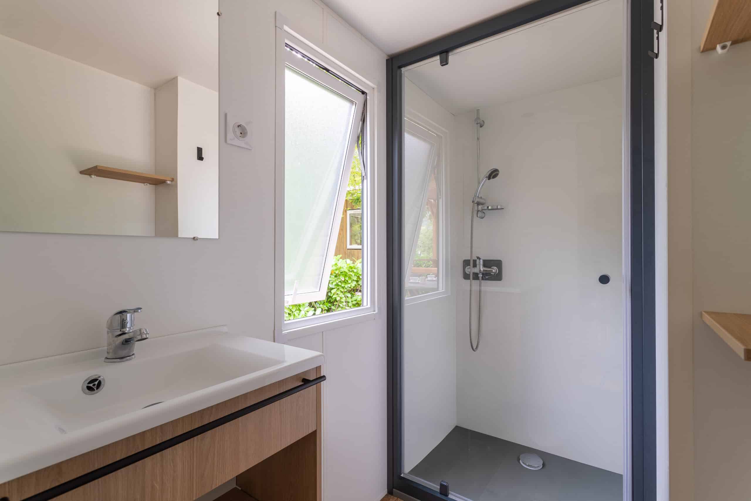 Dieses 23 m² große, klimatisierte Cottage hat zwei Schlafzimmer (ein Doppelbett 140 cm und zwei Einzelbetten 90 cm) und ist ideal für die ganze Familie. Fernseher, Komfort und gut durchdachte Räumlichkeiten: alles ist vorhanden, um Ihnen einen angenehmen Aufenthalt zu ermöglichen.