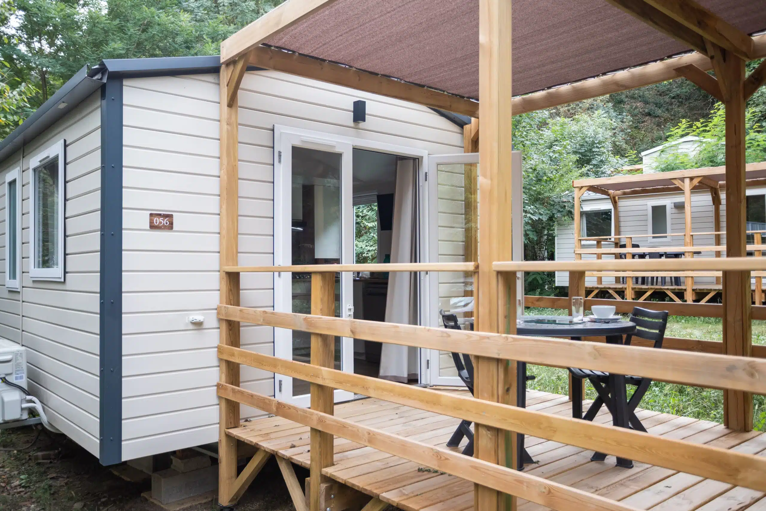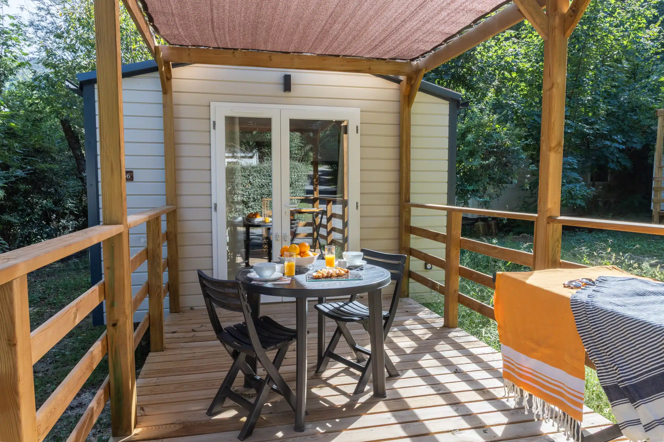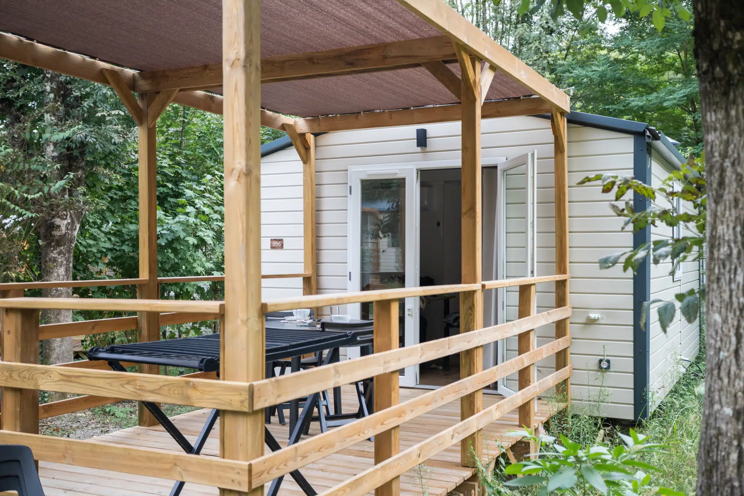 This compact 20 m² cottage is perfect for a couple or small family. With its bedroom equipped with a 140 cm bed, optimized living space and essential equipment, it guarantees a comfortable stay with ease.