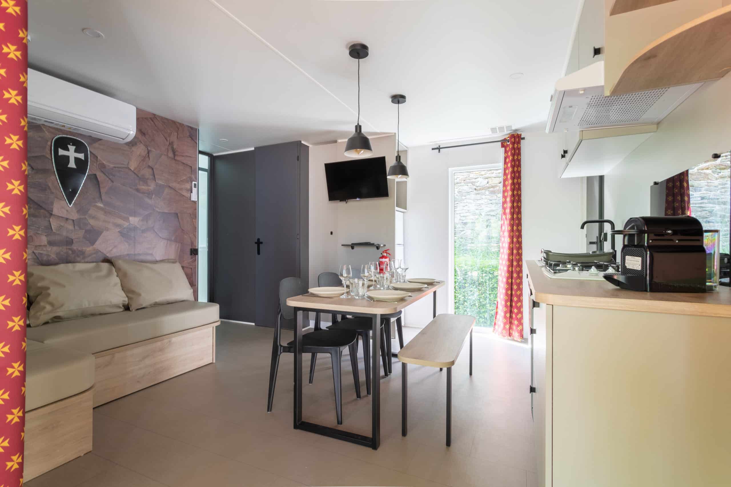 Le Cottage Privilège allie espace, confort et élégance pour des vacances d’exception. Conçu pour accueillir de 10 à 14 personnes, ce mobil-home dispose de 5 chambres et offre tout le nécessaire pour des séjours mémorables.