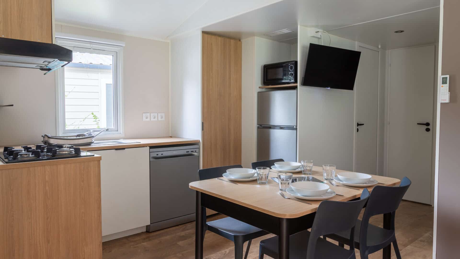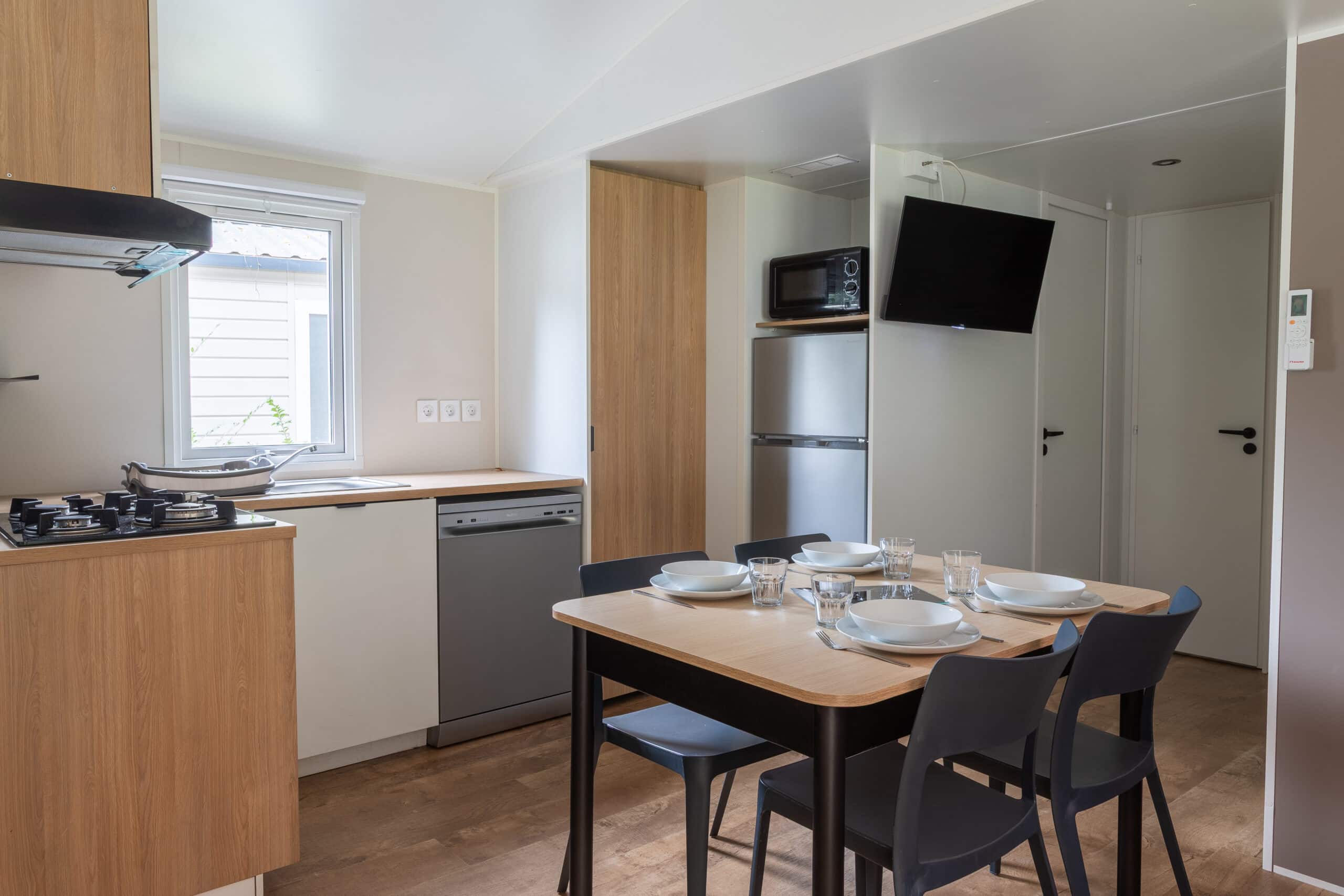 Ontdek de Cottage Confort met 4 slaapkamers, de ideale keuze voor een gezellig verblijf met familie of vrienden. Met zijn 4 ruime slaapkamers is deze stacaravan geschikt voor 8 tot 10 personen.